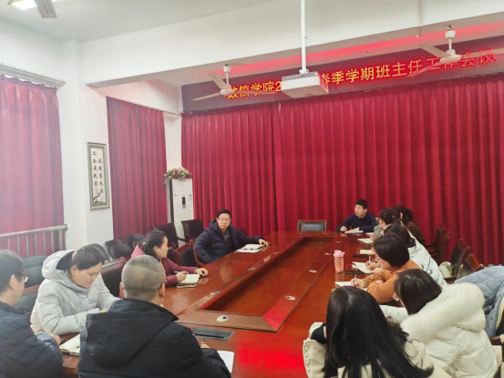杨向宇结合学院工作实际,多个角度系统阐述了当下学风建设的现状,对新学期班主任工作重点与难点进行了简要梳理,就学生安全稳定、思想政治教育、班风学风建设、文明宿舍建设等方面工作进行了具体部署安排。他要求,班主任应持续探索工作方法、积极交流工作经验、全面提升工作能力,以专业优势助推学生成长、注重加强学风建设,挖掘数学专业学生英语学习潜力,提高学生的知识水平和文化素养,将学生培养为基础学科领域的优秀人才,特别是重点关注关爱特殊群体学生,积极探索如何做好学生的知心人、引路人、助梦人。低年级抓课堂教学成效、早晚自习等学风建设,通过定期召开班会、积极参与听课、定期走访宿舍等,关心关注班级学生在思想、学习、科研、生活等各方面的情况;高年级班主任更要及时了解学生个人发展意向,引导学生提前做好考研复试及调剂、求职等未来规划及相关准备。