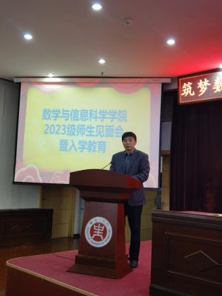 院长宋长明为新生上了开学第一课。他首先向新生介绍了学院院史、院情、师资力量以及新生年龄和生源情况,告诫新生,“立身以立学为先,立学以读书为本”,大学生的第一要务是学习科学文化知识,大学的收获就是掌握专业知识,练就各种本领,学有所成。宋院长通过实际案例向新生介绍数学专业的重要性和市场需求,鼓励新生爱专业、钻专业、精专业,并对新生提出三点希望:一是希望同学们珍惜人生中最后一次全面系统的学习机会,做到青春不悔;二是打造健康的体魄和过硬的心理素质;三是希望同学们珍惜同学友谊,青春不悔,修德不止。最后,他祝愿大家珍惜大学生活,不忘初心,在青春的跑道上释放自信与活力,期待新生用蓬勃的朝气迎接未来美好的大学生活。