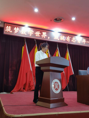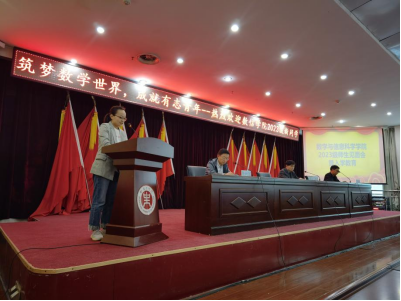 数学201班洪坤强作为老生代表进行发言。他用自己大学三年的经验倡议新生们做好大学规划,踏踏实实学习,丰富业余生活,多运动,拥有健康的身体,肯于吃苦,勇往直前,为实现既定目标打下坚实的基础。