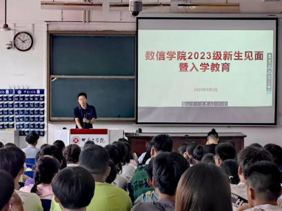 2023级新生见面会暨入学教育,会议由党总支副书记杨向宇主持,全体新生班主任、辅导员,以及全体新生参加了此次见面会。
