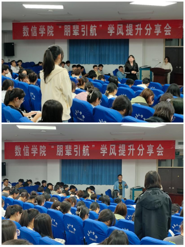 在交流互动环节,同学们就如何规划大学学业、如何学好本专业、如何选择跨学科交流学习以及创新创业等方面同五名榜样代表进行深入交流探讨。数学类221班王紫嫣同学表示,要做好自己的学业发展规划,明确目标,保持高昂的学习热情,争取在学科竞赛方面为学院的高质量发展贡献力量。数学类232班叶婷玉同学表示,要挖掘自身潜力,积极探索跨学科交流的学习机会,助力91国产