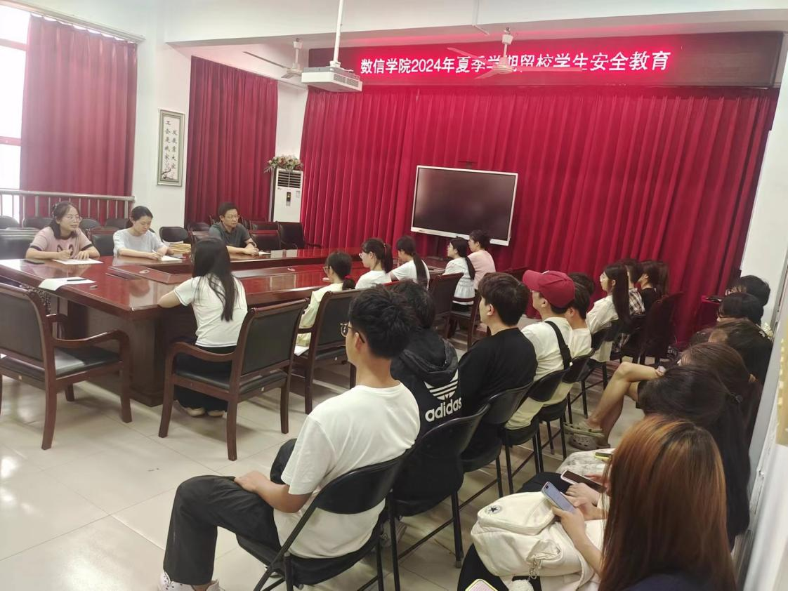 于7月12日召开2024年夏季学期留校学生安全教育工作会议。学院党总支副书记杨向宇、学工办副主任陈婷、团委副书记张瑞楠以及全体本、硕留校生参加会议。