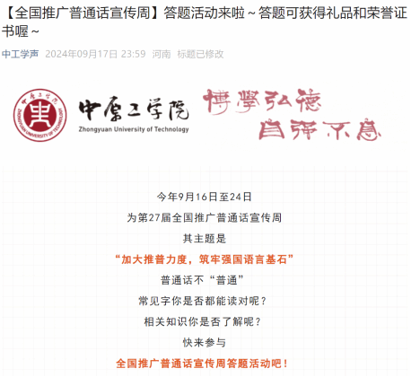 成功举办第27届全国推广普通话宣传周活动