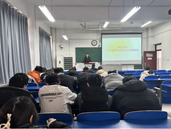 举行毕业生“研后求职”就业工作推进会暨文升道职业培训学校宣讲会。院党总支副书记杨向宇、辅导员陈婷、兼职辅导员张灿辉以及全体2025届本科毕业生参加。