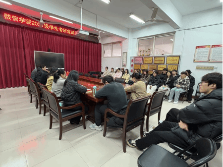 学子们逐一介绍了初试成绩、报考院校及当前困惑。针对数学212班刘梦雪初试成绩排名中游,对复试专业课笔试信心不足的问题,应用数学系主任李吉娜建议通过重新梳理初试中失分较多的题型,进行强化训练,确保基础概念“零漏洞”,再根据参考书掌握经典题型解题模板,并鼓励同学们要相信自己,全力以赴,要有“我命由我不由天”的坚强意志。对于数学213班吕婧婧面临调剂的问题,信科系主任赵杰提出在选择调剂学校时,将“保底院校”与“冲刺院校”相结合,避免扎堆热门地区,建议同学们通过老师、校友帮助自己确定调剂学校,明确调剂院校范围。