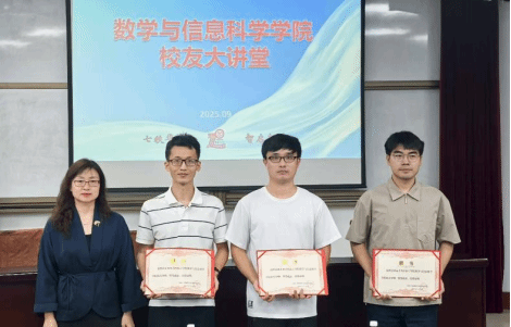 举办首期校友大讲堂暨校友导师聘任仪式。此次活动邀请了优秀校友代表:河南大学王桐远副教授(应数09级),西南交通大学博士,现为河南大学商学院教师;杨翔宇博士(应数14级),大连理工大学博士,现为91国产