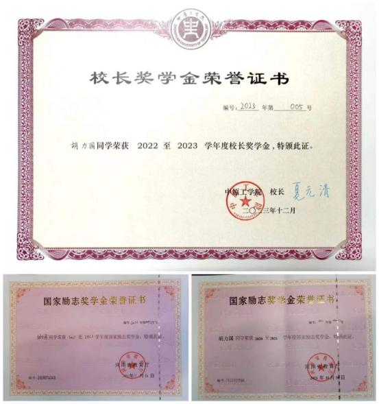 他谦虚务实,勤学善思,学业上孜孜不倦。曾受助于助学贷款和助学金,通过自己的奋发努力,以实际行动回报学校资助。他始终把学习做为主要任务,图书馆是他常去的地方。他说:“图书馆充满了学习的氛围,当你想偷懒时,看到周围的同学都在埋头苦读,这种求学上进的感觉会带动着自己别停下,往前走。”此外,课堂是获取知识的第一地点,每节课45分钟一定要全神贯注地跟着老师的节奏走,有不明白的地方一定要及时解惑,知识都有连贯性,未解的问题会影响下一阶段的学习。通过不懈努力,每学年德育素质测评成绩均为优。通过英语六级考试,各学年成绩名列前茅,综合成绩多次获得年级排名第一。曾荣获国家奖学金、校长奖学金、国家励志奖学金2次。