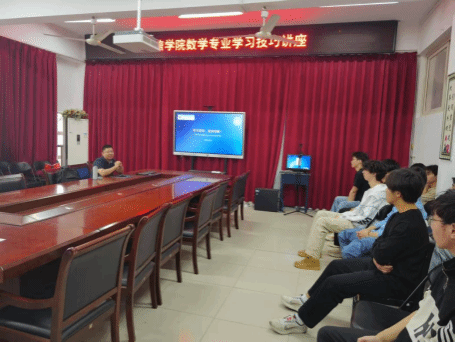 举办“数学专业学习技巧”专题讲座。高等数学教学部资深教师张洪涛担任主讲,围绕“如何读大学”“如何学数学”“未来如何走”三大主题详细讲授,各年级学生代表参加。
