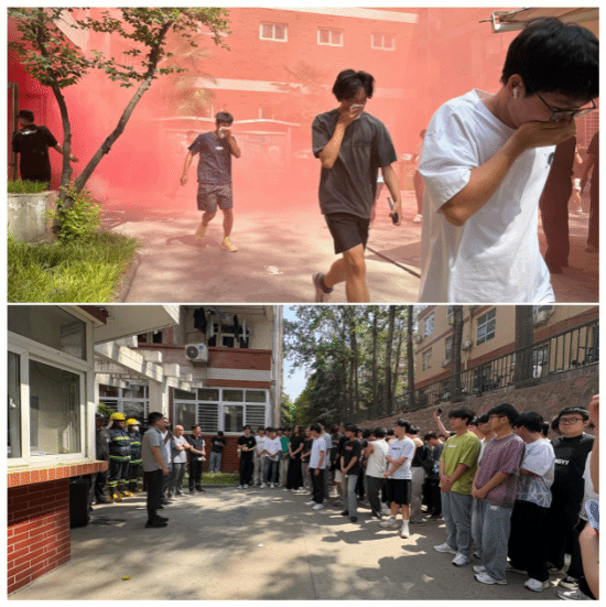 在北苑5号学生宿舍楼,联合后勤服务中心、物理与光电工程学院开展应急疏散演练,模拟突发火情,同学们在引导下迅速、有序地撤离至安全区域。保卫处治安消防科科长王岩现场讲解了灭火器的正确使用方法,以及宿舍楼发生火灾时的逃生技巧,增强了学生面对突发事件的冷静应对能力与应急逃生能力。