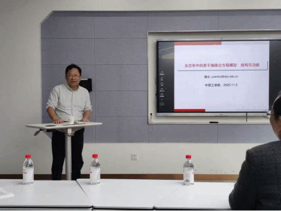 随后,楼元介绍生态系统中种群扩散对系统结构及稳定性的影响,详细阐述团队通过分析多个偏微分方程模型,探究空间扩散与环境因素对种群分布(对应结构)的作用,同时借助博弈论揭示各类进化稳定的扩散策略(对应功能),并通过理想自由分布理论,为结构与功能的关联提供直观生物解释。